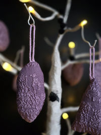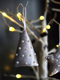 These are handmade, fabric baubles with inner padding for a plush quality. There are different fabric qualities, colours and shapes available, not your traditional Christmas designs. All are approx. 5-6cm wide and 10cm long, including the ribbon or wool hanging loop.